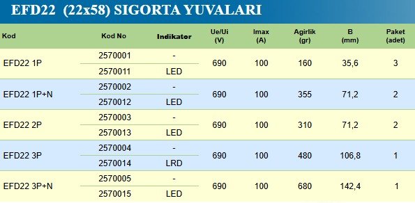 EFD22 3P 2570004 22x58mm Sigorta Yuvası